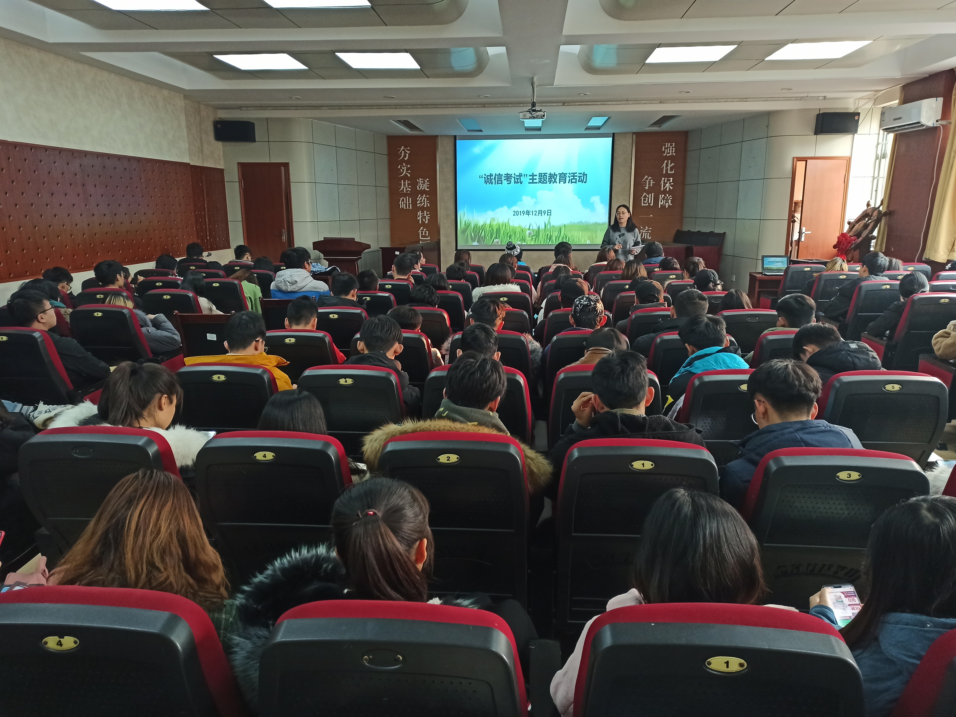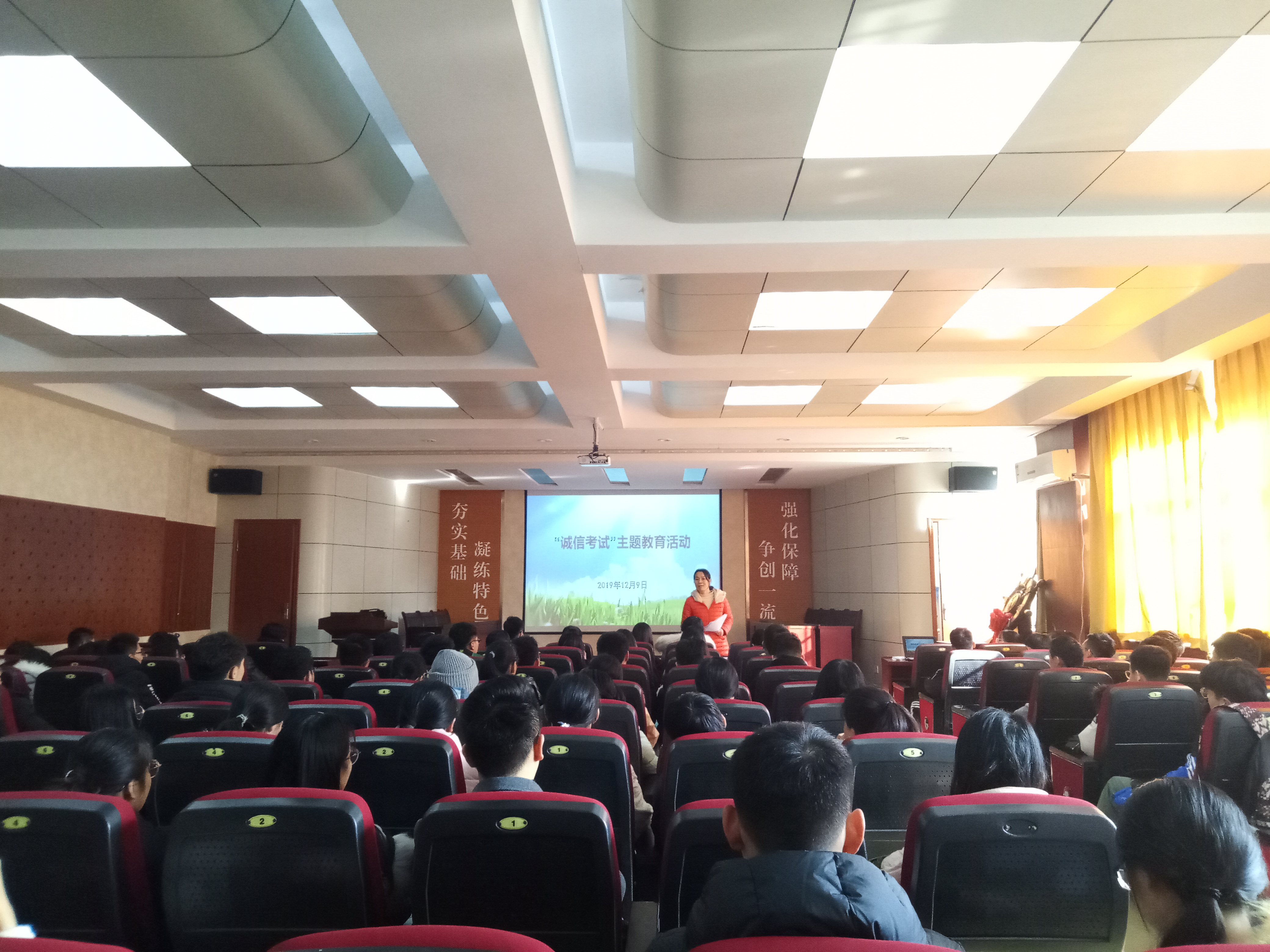 12月9日,我院举办“诚信考试”主题教育活动,向全体在校同学进行诚信教育。会上,各位辅导员老师首先宣读了学校关于考风考纪的相关要求和处分规定,讲解了诚信应考的具体内容,提醒大家要正确对待考场纪律。通过已有的考试违纪案例,告诫同学们不要以身试法,违纪违规,并提醒大家带好考试所需有效证件及文具用品。会后,全体同学签订了考试诚信承诺书。本次教育活动,端正了考风,严肃了考纪,同学们纷纷表示会积极备考,诚信应考,努力争取好的成绩。(通讯员:徐华坤)