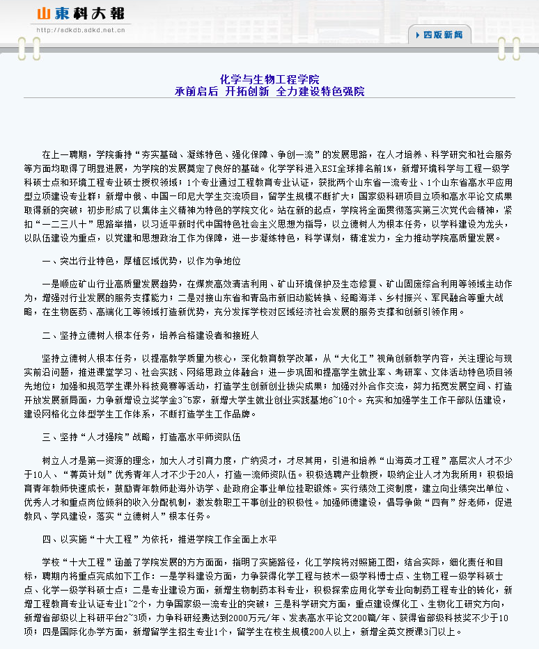 近日,《山东科大报》、学校网站刊载我院发展目标文章,原文如下: